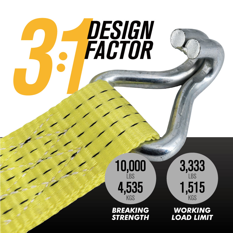 The industry-standard for dependable load management, these 2" x 27' Heavy Duty Straps are the workhorse of the towing world. Crafted from high-grade, high-tenacity polyester webbing, they are strictly verified to WSTDA standards with a 10,000 lbs breaking strength. Featuring a robust 3:1 safety factor and a 3,333 lbs WLL, these wire-hook straps offer the perfect balance of cost-efficiency and uncompromising road safety for everyday hauling.