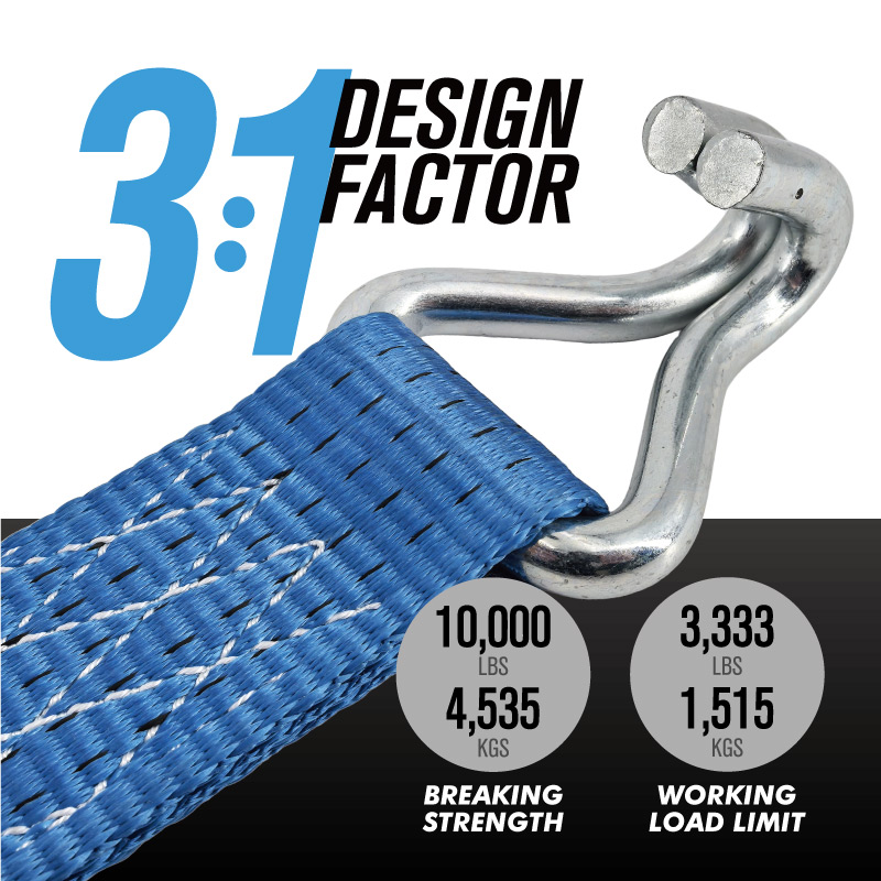 The industry-standard for dependable load management, these 2" x 30' Heavy Duty Straps are the workhorse of the towing world. Crafted from high-grade, high-tenacity polyester webbing, they are strictly verified to WSTDA standards with a 10,000 lbs breaking strength. Featuring a robust 3:1 safety factor and a 3,333 lbs WLL, these wire-hook straps offer the perfect balance of cost-efficiency and uncompromising road safety for everyday hauling.